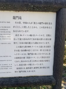 昔、唐人がこの滝を見て「漢土(中国)の龍門の滝を見るがごとし」と賞したことから、龍門滝と呼ぶようになったと現地に説明書きされていました。
