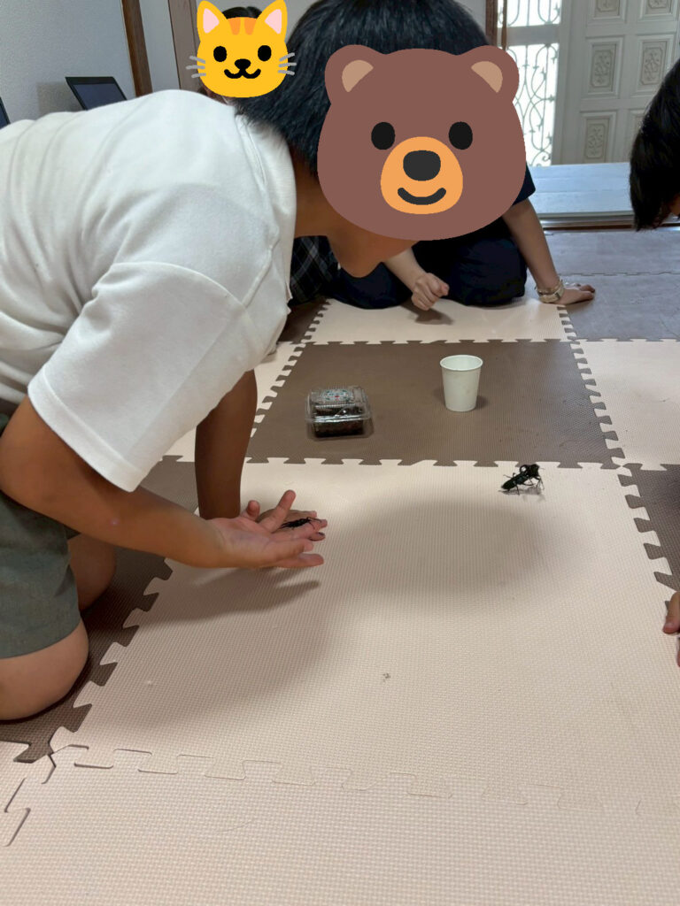 子どもたちも、スタッフも実際のクワガタ虫に興味しんしんです👀